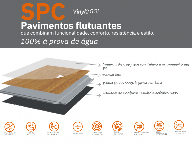 Pavimento SPC – Pavimento Flutuante que combina funcionalidade, conforto e estilo. 100% à prova de água.