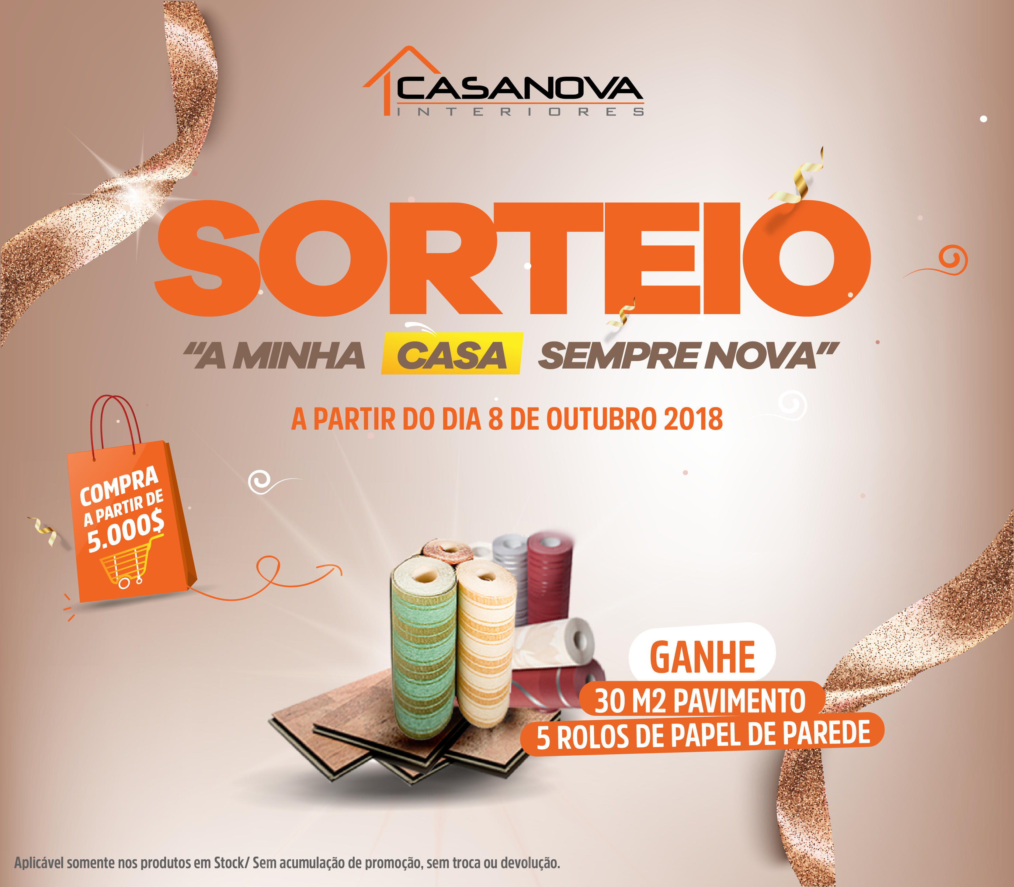 Poderás ganhar 30 M2 de PAVIMENTO FLUTUANTE e ainda mais 5 ROLOS de PAPEL DE PAREDE.